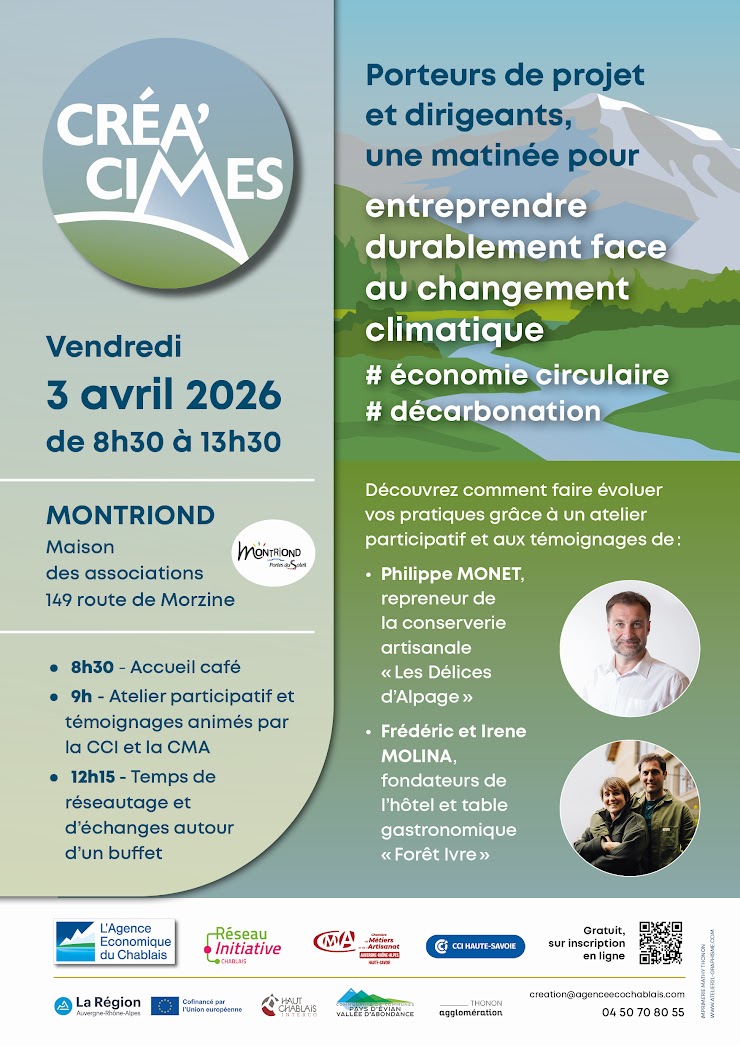 Entreprendre durablement face au changement climatique, une matinée pour porteurs de projets Montriond 04/04 de 8h30 à 13h30